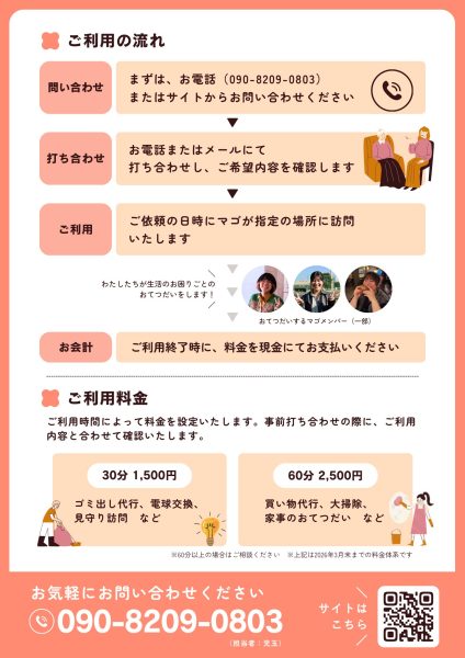 おてつだいのご依頼・ご相談は、上記LPサイトの申し込みフォーム、あるいは電話(090-8209-0803:児玉)から直接お申し込みください。